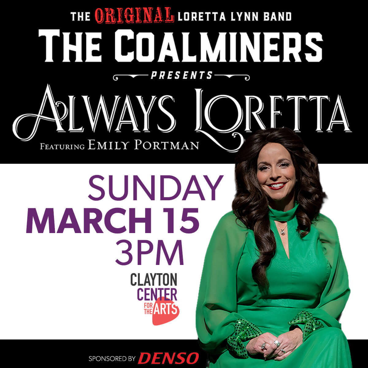 Due to inclement weather, this performance originally scheduled for Saturday, January 24 has been rescheduled for Sunday, March 15 at 3PM. All tickets previously purchased will be honored for the new date—no exchange or action is necessary. The Coalminers — the band who toured with Loretta Lynn for over 40 years in front of…